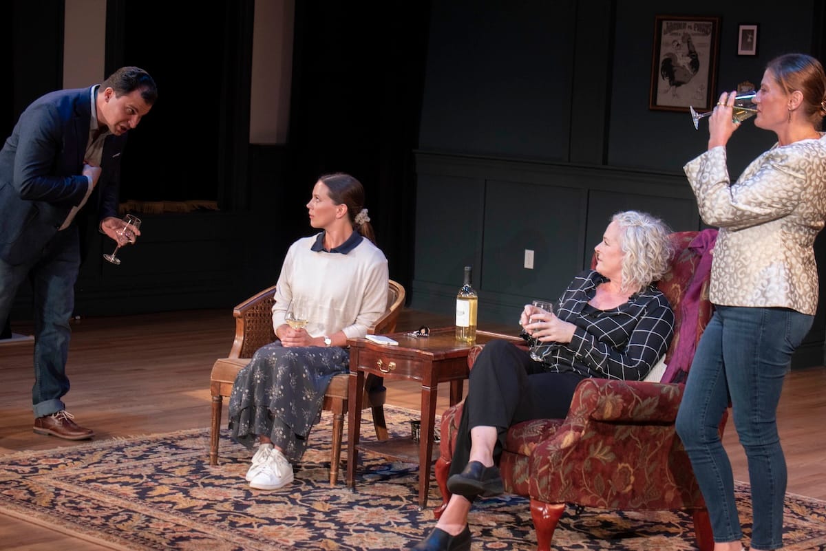 Following the introduction of Hilda and Linda’s relationship, the narrative shifts to a dinner party. This setting introduces Maggie Tisdale’s Sylvia and Jihad Milhem’s Jerry, and both actors contribute to the play’s social and political dimensions.
