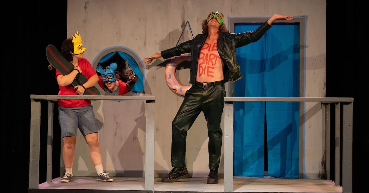 McConnell is the highlight of this sequence, artfully portraying a nervous wreck who’s perhaps the only one honest enough to show how scared he is. In the third act, he’s taken on the role of Scratchy — the cartoon mouse always at war with the mouse Itchy (Sarah J. Baker) — while the characters of Sideshow Bob and Mr. Burns have merged into one nasty entity played with demonic enthusiasm by Darling. Meanwhile, Karis Elliott, who played a high-strung businesswoman in Act Two has fully taken up the mantle of Bart Simpson.
