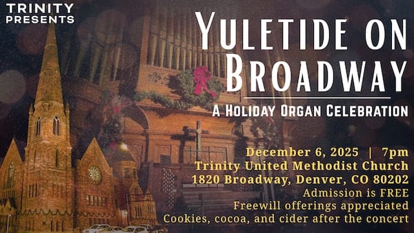 Join us for a Holiday Organ Celebration with music from three organists. Free admission, but freewill offerings are appreciated. There will be a reception in the Fellowship Hall at 6:00pm with cookies and warm drinks provided by our Youth.
