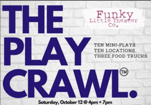 Come see ten mini-plays (four minutes or so) being written for this event! Each play will be staged around businesses in Old Colorado City. Each group of audience members will be led by a Crawl Guide to ten performances. Each of the plays will be happening simultaneously and every group will see every play just in a different order. Be sure to make time to enjoy our food trucks before each crawl! We are so excited to have Creole Roots, The Corn Hole Food Truck and Grilled Cheese Food Truck at this unique theatrical experience!