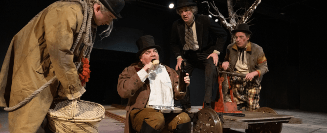 Despite pacing issues, Bas Bleu Theatre's production of Waiting for Godot is elevated by strong performances and innovative design.