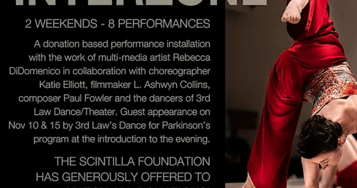 A donation-based performance installation with the work of Multi-media artist Rebecca DiDomenico in collaboration with choreographer Katie Elliott, filmmaker L. Ashwyn Collins, composer Paul Fowler and the dancers of 3rd Law Dance/Theater.